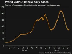 “There is an extra layer of uncertainty in the global recovery with economies like South Africa, Australia, and parts of Asia with their lockdown restrictions because of the Delta variant,” said Simon Harvey, senior FX market analyst at Monex Europe in London.